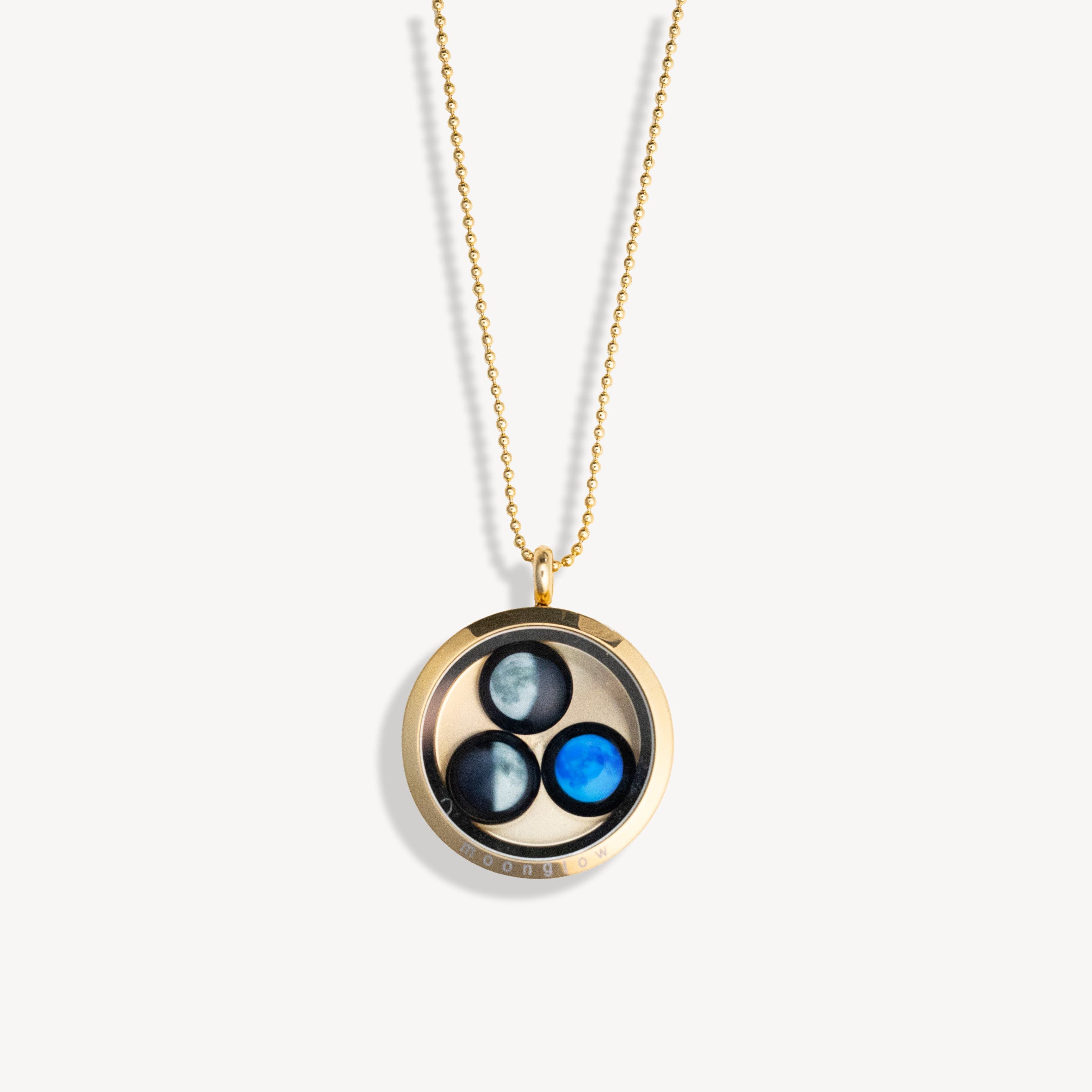 Fill your locket with the moments you treasure with those you love -- the birthdays of your three-member family, your three children, or a trilogy of events that are most meaningful to you. Each charm is aligned with the moon phase on your sacred date and illuminates by night to light your journey forward.