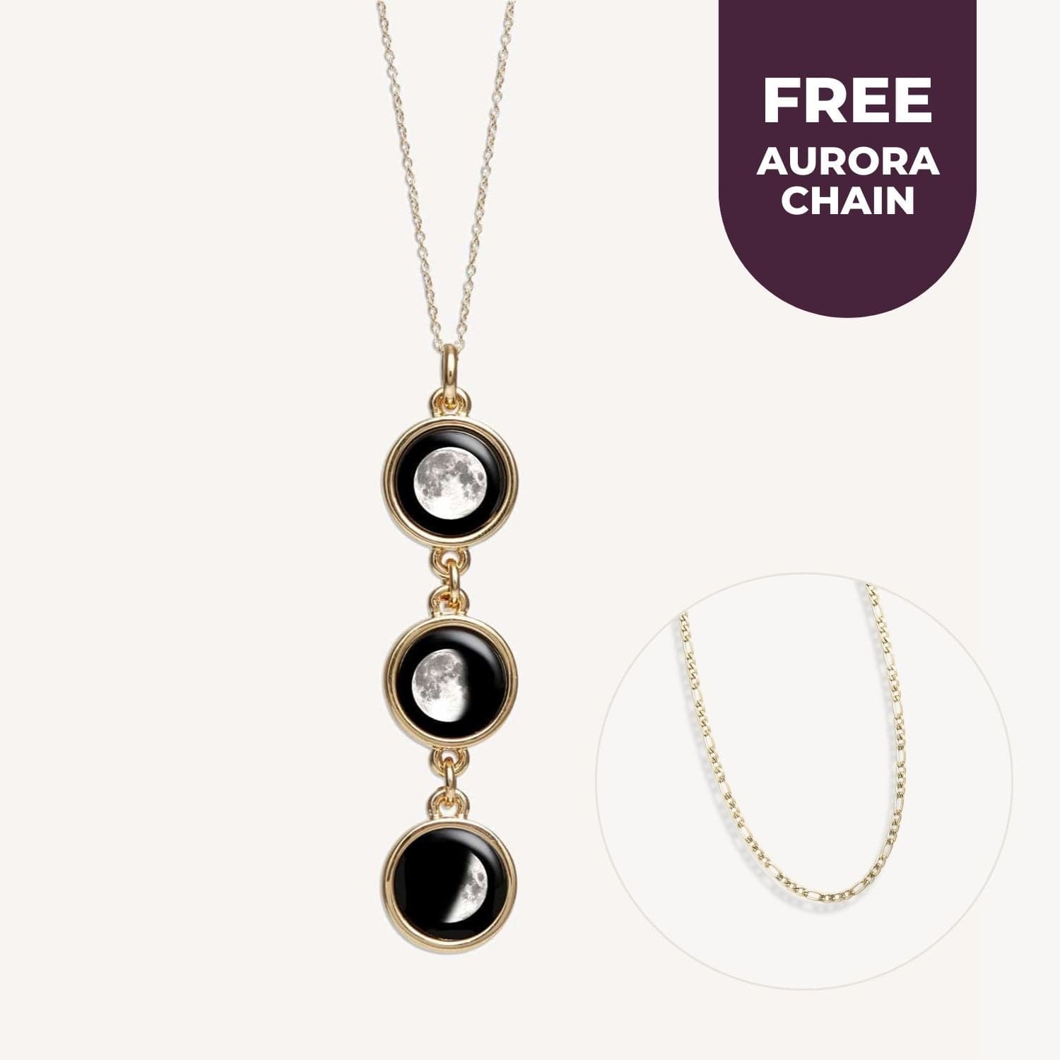 Now offered in our Golden Memories collection, the awe-inspiring pendant suspends three mini moon charms on a matching slim chain and is designed to feature three personal moments that matter to you.