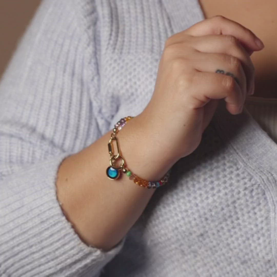 Celebrating rainbow babies and mommies alike, the Harper Bracelet pays homage to those we welcomed into this world, and those we loved but never had the chance to meet. Inspired by the artwork of quadruple “rainbow” baby Harper McGowan, this bracelet embodies the idea that even after the darkest storm, a rainbow can brighten the sky.The Moon is with us for all our moments, those of silent sorrow and immense happiness. It is featured on this bracelet from any date that will forever have a hold on your heart. With multi-colored beads and a gold band, this beautiful piece will celebrate your miracle. A portion of proceeds will be donated to UH Rainbow Foundation supporting rainbow families everywhere.