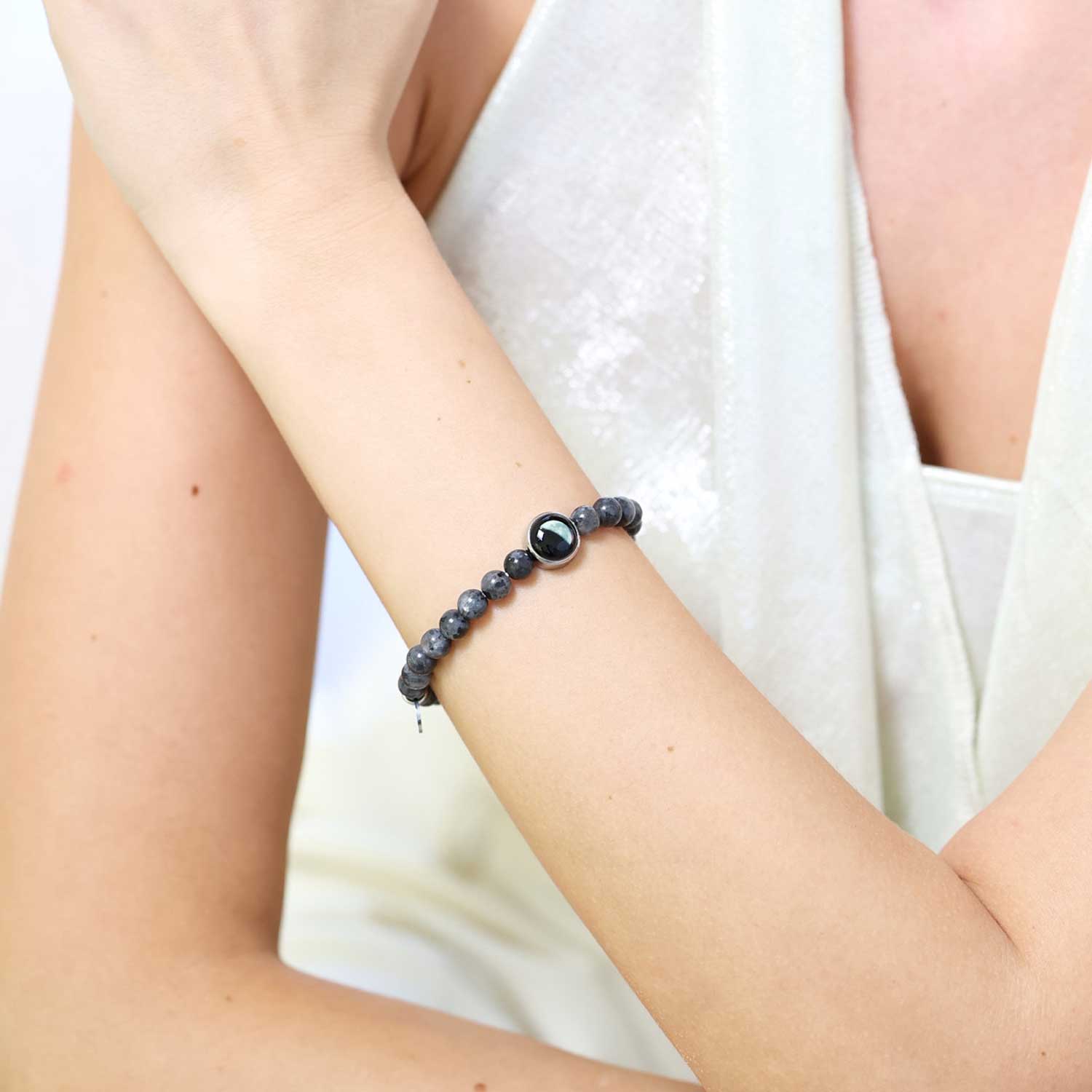 labradorite beads known for their shifting, iridescent glow, this bracelet channels the energy of new